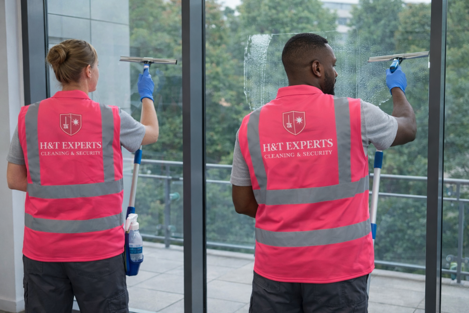 - Cleaning main entrance door windows and glazed access points